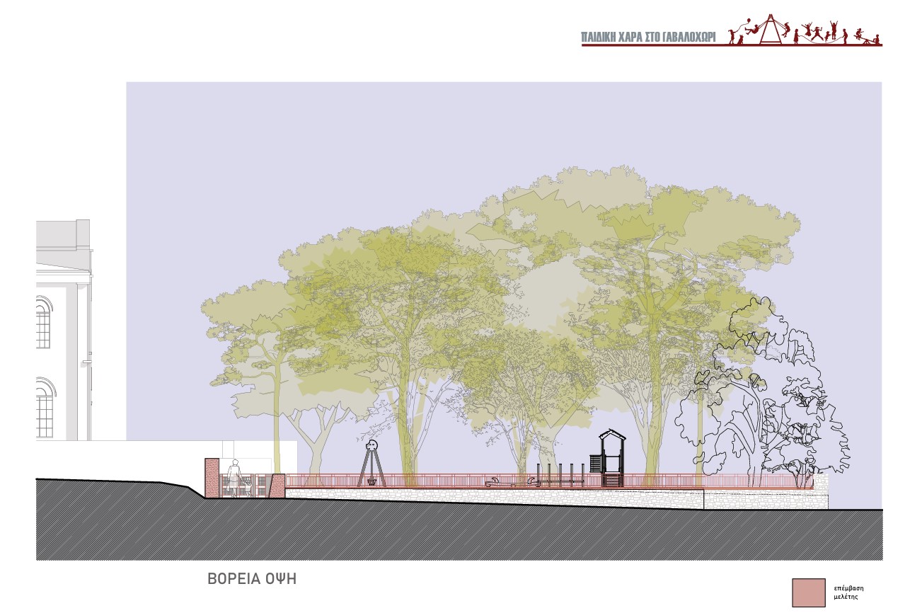 Στις φωτογραφικές γκαλερί, μπορείτε να εξερευνήσετε τρισδιάστατες αρχιτεκτονικές απεικονίσεις της παιδικής χαράς Γαβαλοχωρίου, καθώς και τη μελέτη σχεδιασμού της παιδικής χαράς, γραμμένη στα ελληνικά, και τα δύο δημιουργήθηκαν από την αρχιτέκτονα Χριστίνα Μπαλωμενάκη.