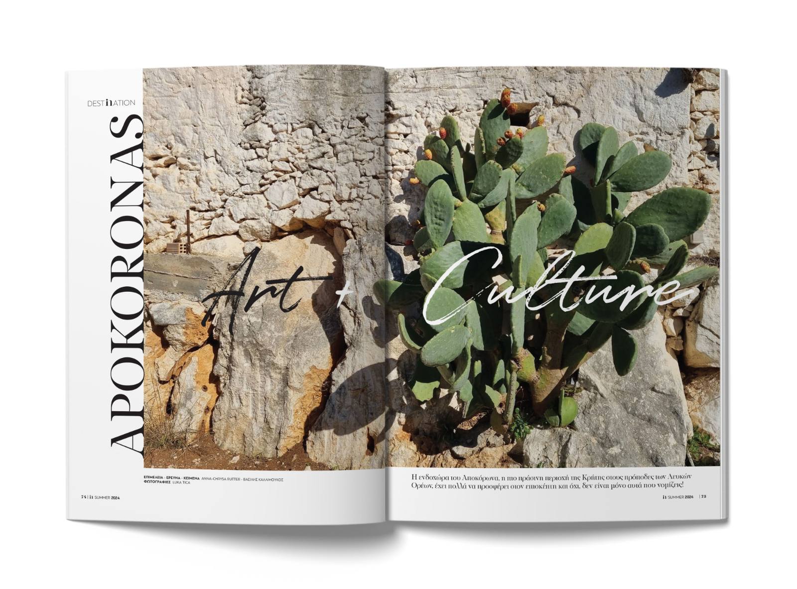In the summer of 2024, Anthony and Sonja had the opportunity to meet with Aggeliki Charalambaki, the editor of In Town magazine in Chania. She was interested in publishing an article that would spotlight the vibrant art scene in the prefecture of Apokoronas, with a particular focus on the village of Gavalochori. To bring the story to life, the Foundation hired several local residents to research, write, and photograph the many individuals shaping the local arts scene. The result was the article “Apokoronas Art + Culture,” published in the summer of 2024. The piece celebrated a diverse array of local artists and cultural promoters ranging from those leading music associations and interior design projects to the passionate presidents of village cultural groups. It highlighted an eclectic mix of individuals, including a beer-bottle collector, the artisans of kopaneli lace—a craft with deep roots in Gavalochori, the owners of artisan shops, a clothing designer, a glass-blowing workshop, a stone sculptor, and a potter.