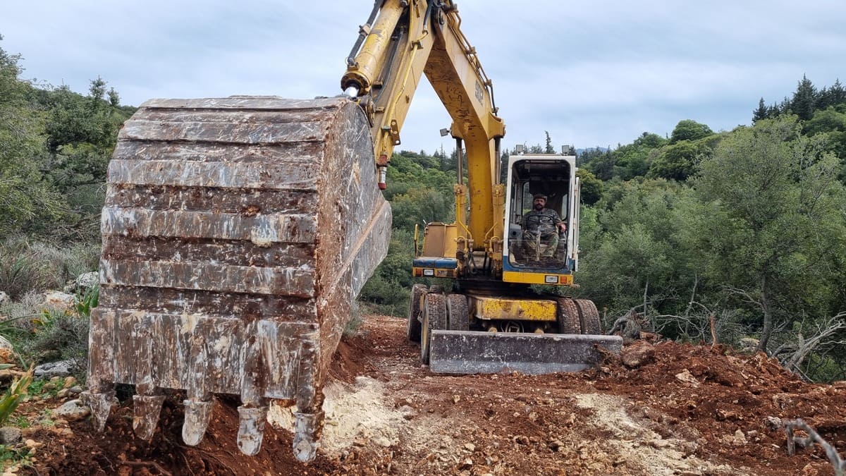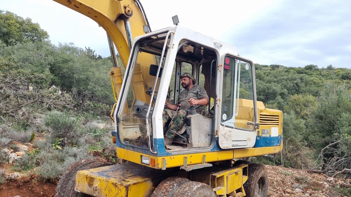 Kostis Bakatsis in his excavator, Gavalochori. Luka Tica, Foundation for Gavalochori