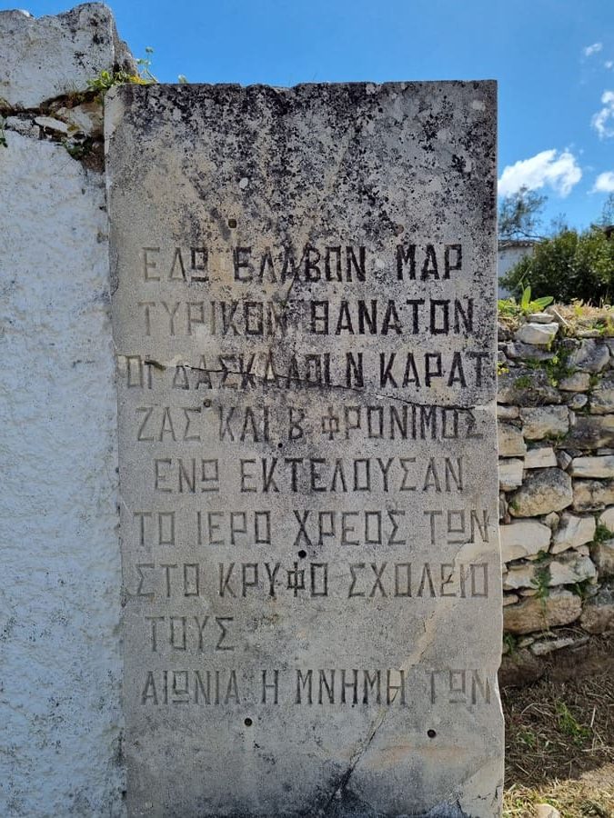 19世纪时教堂后面建起了一所秘密学校。在1669年至1898年土耳其占领克里特期间,希腊儿童被禁止接受教育,但教师Vasileios Fronimos和Nikolaos Karatsaz无视法律,在村中的建筑里教孩子们学习。当土耳其人发现这所地下学校时,将其烧毁,两名教师也被处决。教堂前纪念这两位老师的牌匾上写着:“两位老师N. Karatzas和V. Fronimos在克里福学校(Krifo Scholio)从事神圣工作时不幸遇难。愿他们的精神永存。”